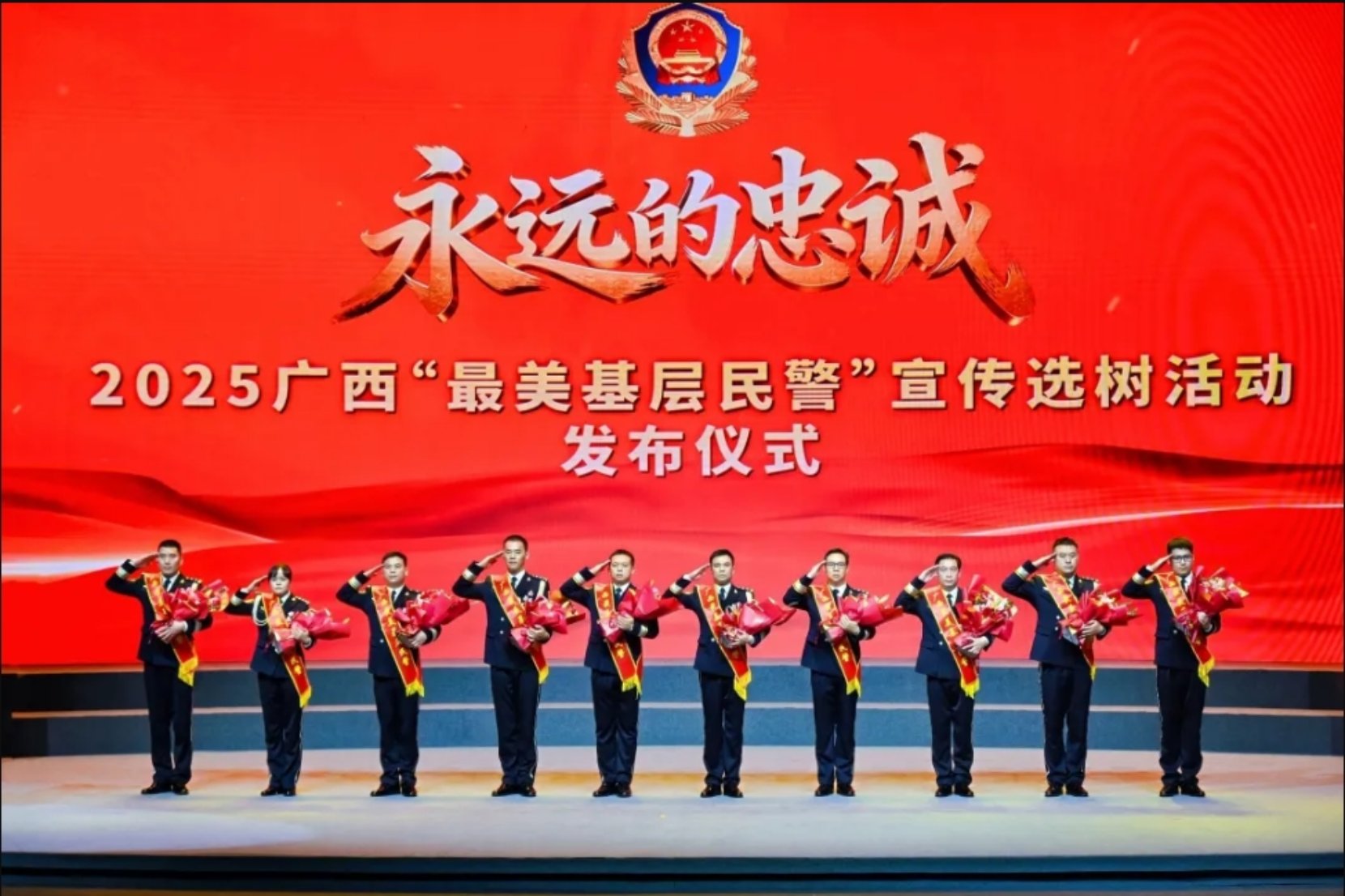 2025年,按照中宣部、公安部及自治区党委、政府的统一部署,我区开展2025广西“最美基层民警”宣传选树活动。经广泛推选,马晓库、杨柳、罗飞翔、何伟峰、闫明、陈帅安、赵必锋、韦德信、鄢映东、甘国良10位优秀基层民警脱颖而出,成功当选。