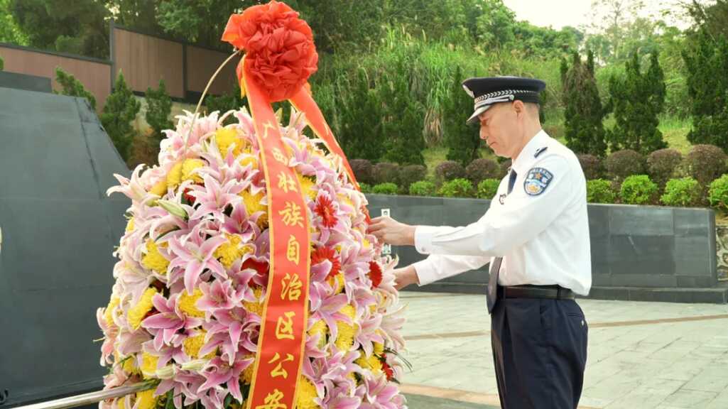 4月3日上午,广西壮族自治区公安厅在广西公安烈士纪念园庄严举行清明祭奠公安英烈活动,深切缅怀为维护国家安全、社会稳定和人民安宁献出宝贵生命的广西公安英烈。自治区公安厅党委书记、厅长徐国华出席活动并讲话,激励广大公安民警辅警赓续红色血脉、忠诚履行新时代职责使命,将英烈精神转化为推动公安工作高质量发展的强大动力,为谱写中国式现代化广西篇章贡献公安力量。