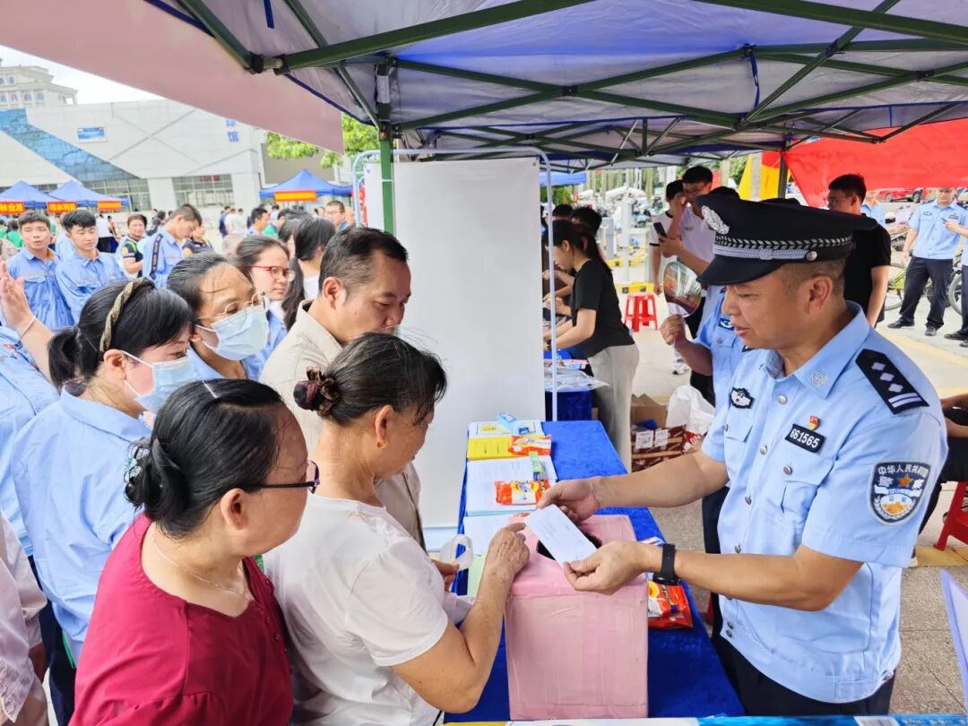 活动现场,民警“摆摊设点”,通过发放宣传资料、有奖问答、接受群众咨询等方式,讲解安全生产相关法律法规和近期发生的安全生产事故案例,普及缉枪治爆、应急避险、自救互救等安全知识,教育引导广大群众在生产生活中要严格落实各项安全措施,提高安全生产意识。