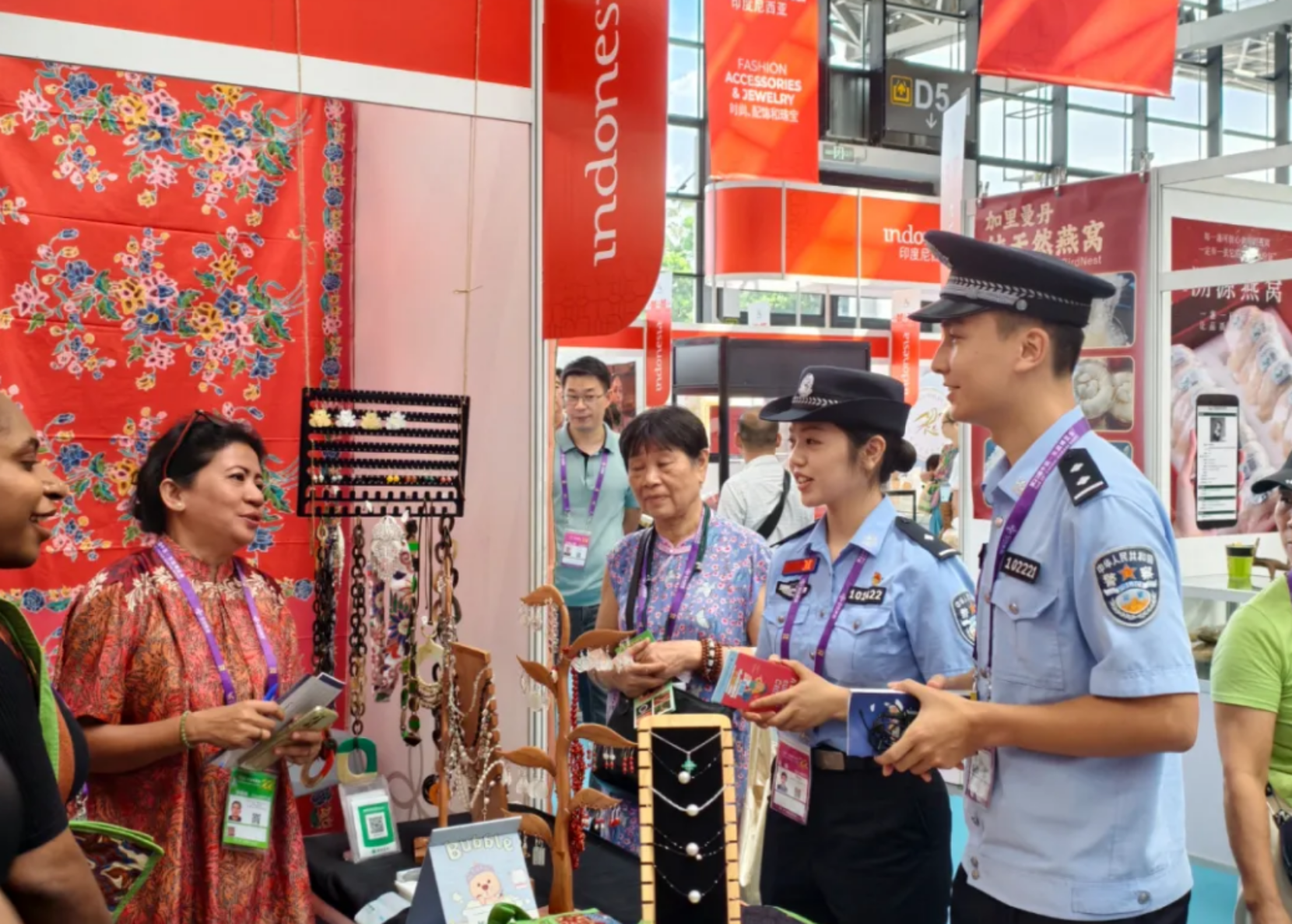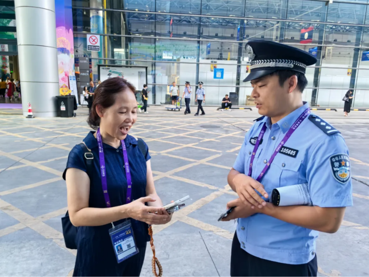 第22届中国—东盟博览会、中国—东盟商务与投资峰会举办期间,南宁市公安局组织警力细心维护场馆秩序,在参展商和各界宾客需要帮助时提供多语翻译、办事答疑、咨询求助等服务,获得客商和群众的赞扬。