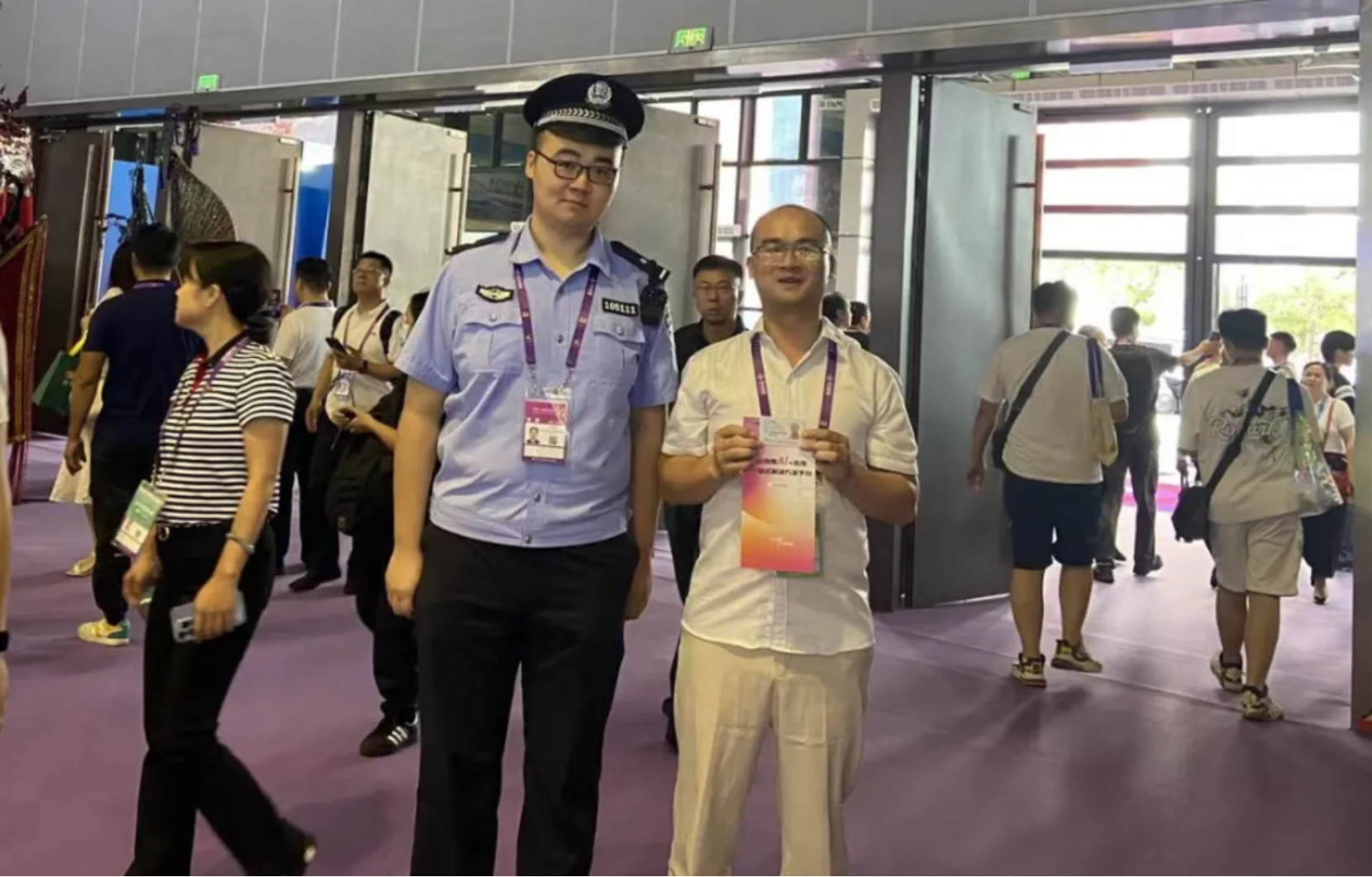 9月17日14时许,高新分局民警唐弘毅等人在会展中心B1展馆开展工作,发现某展区角落有一黑色背包,未见有人前往认领。随后民警通过包内的证件信息,很快与失主取得了联系,并告知对方情况。不久,一男子来到约定地点,经核实信息无误,民警将背包归还对方。“我真是粗心,幸好有你们的帮忙。”男子对民警的工作细致表示感谢和称赞。