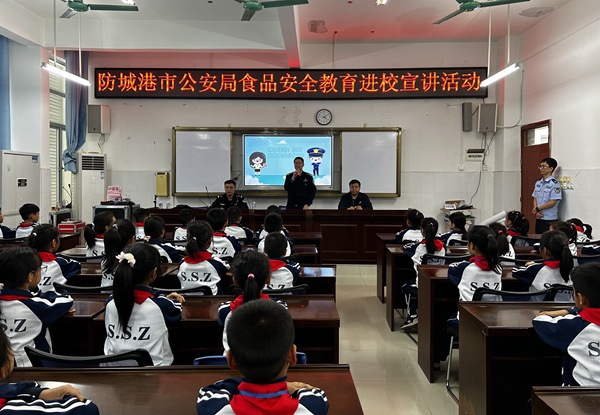 为提升中小学生食品安全防范与自我保护能力,10月29日,防城港市公安局环食药侦支队组织宣讲团队走进防城港市第四中学,以创新形式开展“食品安全进校园”主题宣讲活动,为200余名师生送上实用的食品安全知识,织密校园“舌尖安全”防护网。