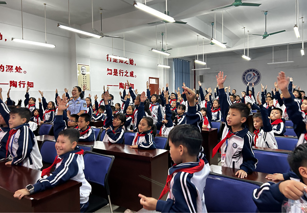 互动问答环节气氛热烈,学生踊跃参与,民警为“答题小能手”发放纪念品,并发起“校园食品安全小卫士”倡议,号召学生主动抵制垃圾食品,成为食品安全知识的传播者与监督者。