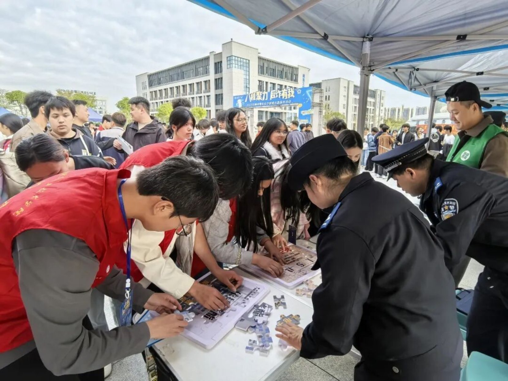 现场同步开展了形式多样的青年反诈联盟集章挑战活动。师生们兴致勃勃地参与到“螺警官”打卡合影、警用装备体验、小型反诈宣讲等各环节中,通过亲身参与和创意表达,进一步深化了对电信网络诈骗花样与危害的认知,切实提升了安全防范的意识和能力。