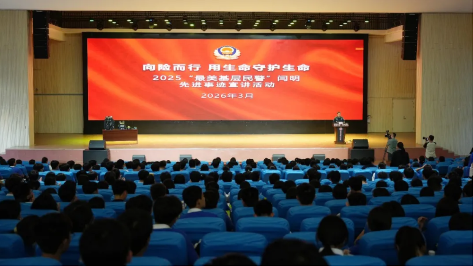 “当你们觉得学习很苦、坚持很难的时候,请想想我们在黑暗中寻找微光的执着。”闫明用自己的经历鼓励同学们,“今天每一分努力,都在为未来积攒力量;每一次坚持,都是为了将来也能成为照亮别人的那束光。”真挚话语直抵人心,引发强烈共鸣。