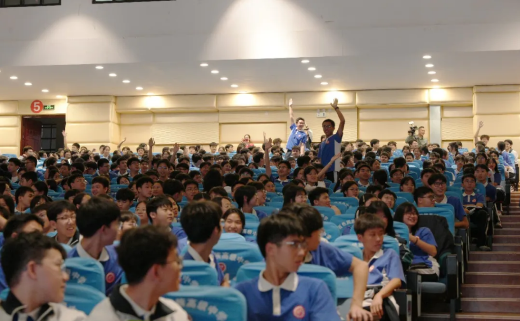 学生踊跃举手参与互动环节。 蒙秀丽 摄
