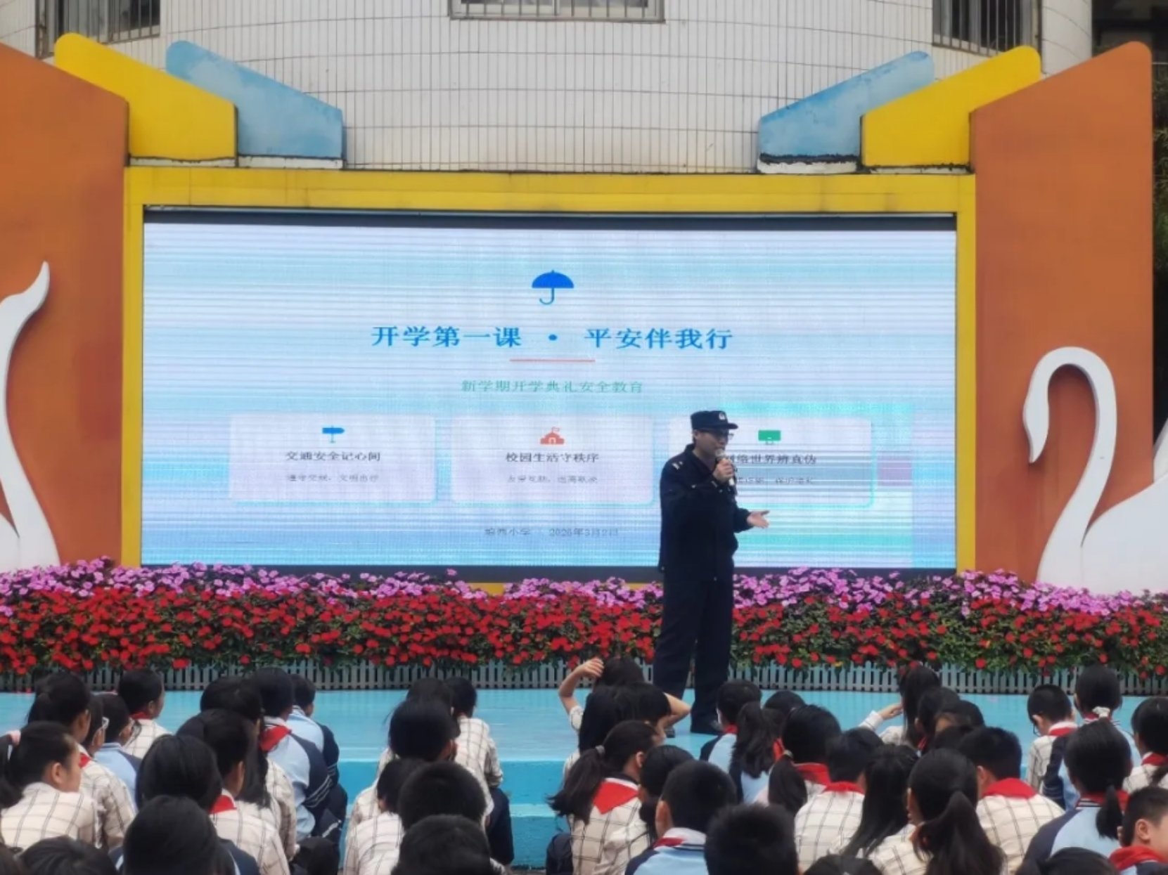 南宁:春风拂邕城 警护“上学路”