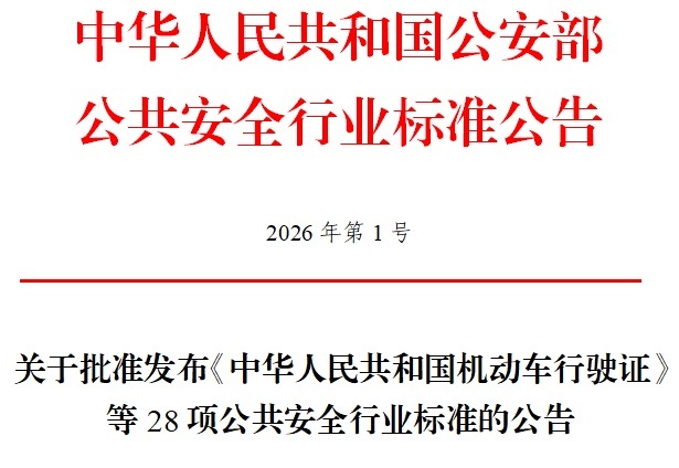 公安部批准《中华人民共和国机动车行驶证》等28项公共安全行业标准,并报国家市场监督管理总局备案,现予以公告。